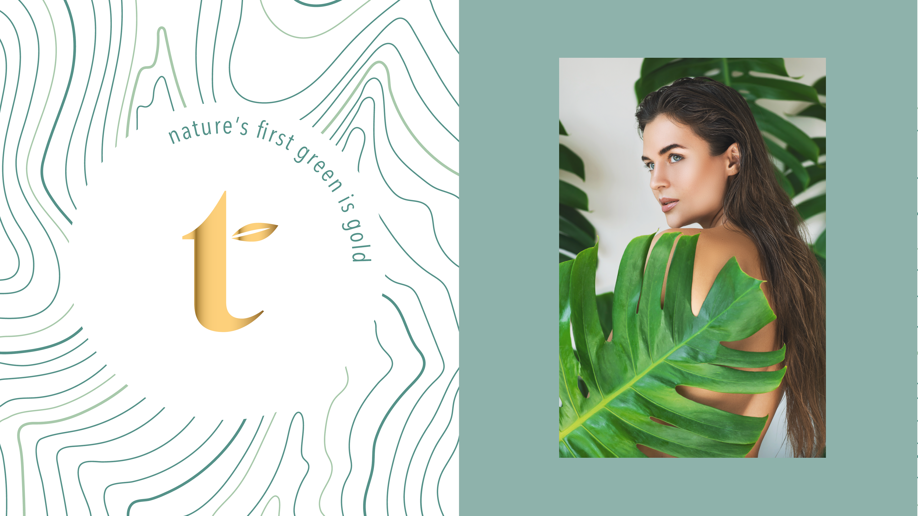 I designed the identity and packaging to revolve around elements of nature. The package design is inspired by the contour lines on topographic maps. As I was creating the logo, I was heavily influenced by a line from a Robert Frost poem, "Nature's first green is gold." The gold foil logo has a leaf sprouting from the letter "T".